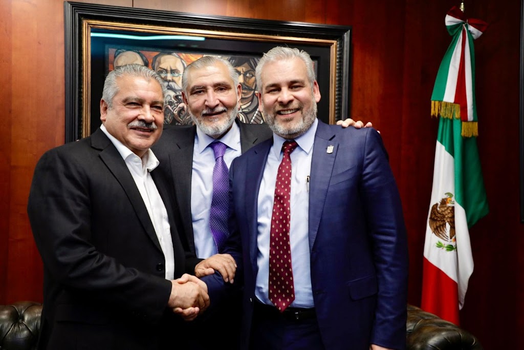 Ciudad de México, 18 de febrero de 2025.- El gobernador Alfredo Ramírez Bedolla, el presidente de la Junta de Coordinación Política de la Cámara de Senadores, Adán Augusto López Hernández y el senador Raúl Morón Orozco acordaron respaldar las iniciativas de reforma constitucional de no reelección y nepotismo electoral, propuestas por la presidenta Claudia Sheinbaum Pardo.