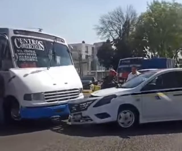 Morelia, Michoacán, 13 de febrero de 2025.- Un microbús y un taxi protagonizaron un choque en la avenida Madero Poniente, esquina con avenida Pedregal.